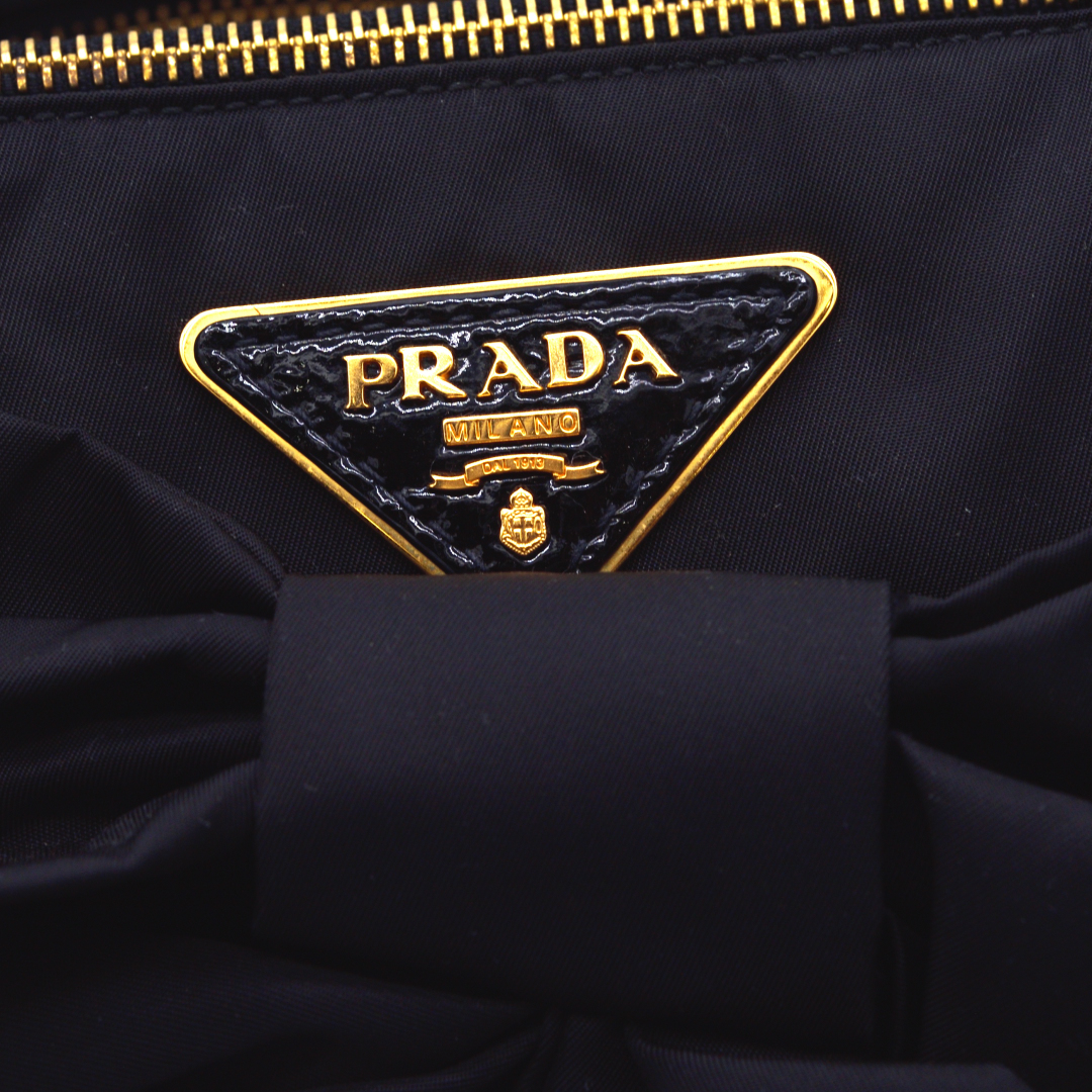 PRADA プラダ ハンドバッグ 三角ロゴプレート リボン ナイロン レザー