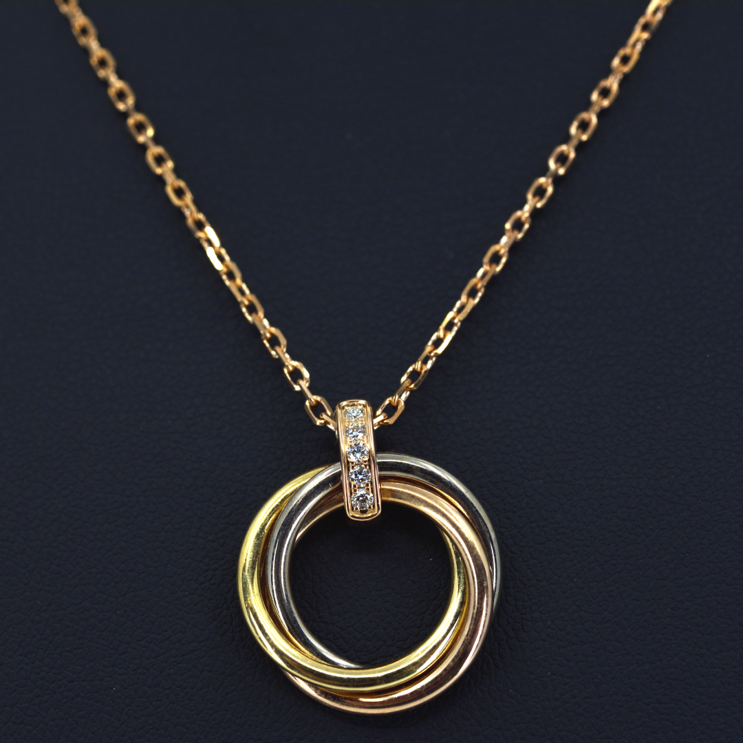 カルティエ Cartier ネックレス トリニティ サークル スリーカラー 5ポイント ダイヤモンド K18PG K18WG K18YG