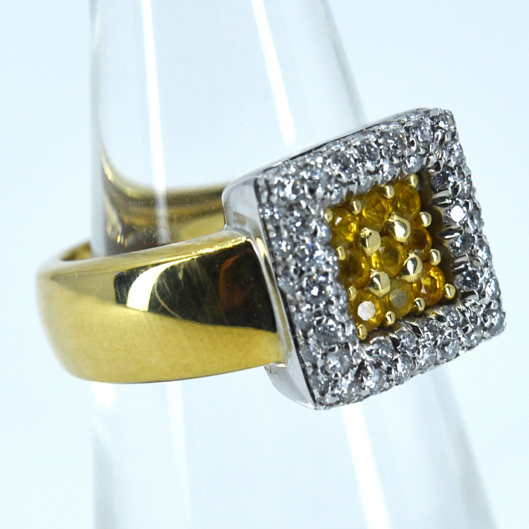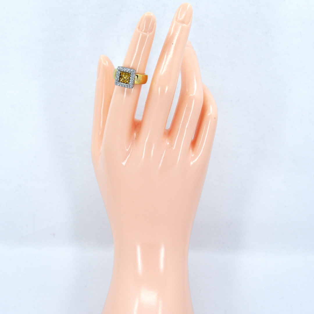 - K18 正方形印鑑型イエローダイヤモンドリング