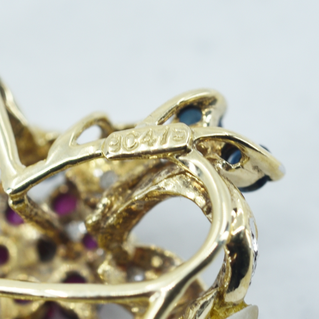 K14 フラワーバケット型ペンダントトップ 色石付