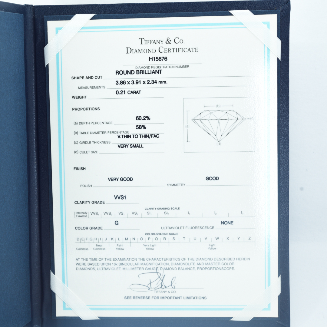 ティファニー Tiffany&Co PT950 立て爪リング 0.21ct ws1・Gカラー・VERY GOOD 鑑定書付き
