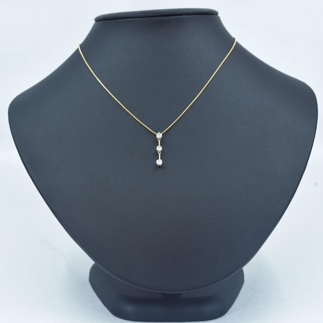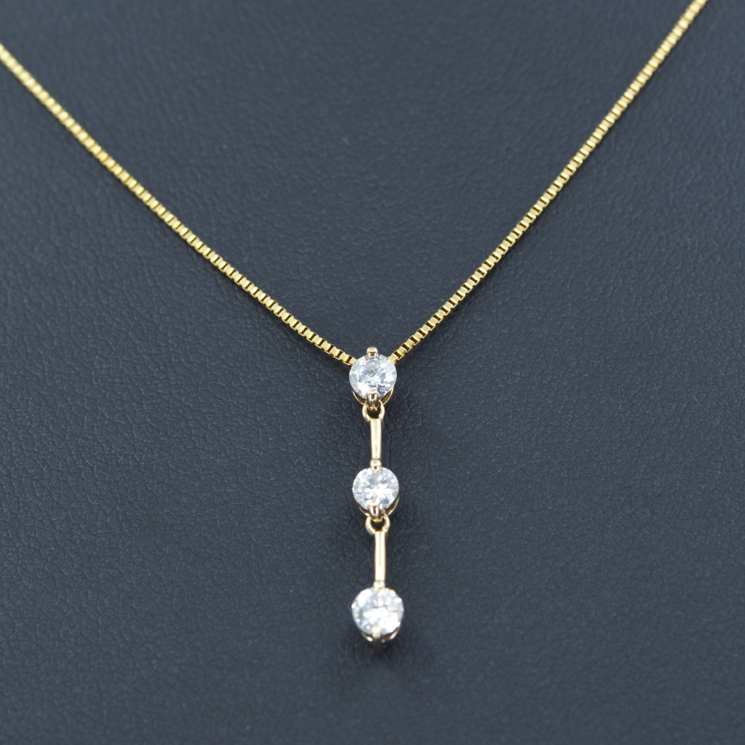 K18 ダイヤモンドネックレス 縦3石 調整式ベネチアンチェーン